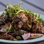 “These oysters are geared to be served in a high-volume setting,” Wood said regarding his transcendent grilled barbecue variety presented on the half shell. “When you try them, it’s like getting hit in the face with a wave at Wrightsville Beach.”