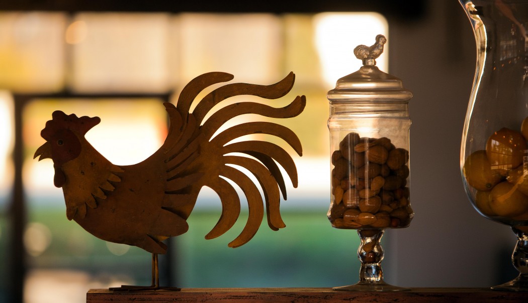 Lest you think it’s all about the food at Little Hen, the 70-seat dining room makes a tremendous first impression all by itself. Industrial-style exposed ductwork and a high ceiling coalesce with modern farmhouse décor to create a contrast that beckons patrons to come and enjoy an inimitable dining experience. Where else around here will you find white linen tablecloths and rustic agricultural implements under the same roof? Consider it farmhouse chic.