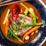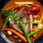 In a recent catch of the day, snapper was served with crawfish, brandy lobster sauce and steamed vegetables.
