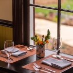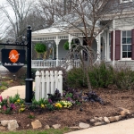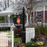 The main dining area, apportioned into several rooms, provides seating for about 75 guests. A charming wrap-around front porch offers guests a relaxing al fresco option. Dining at a table on the lawn is also enticing.