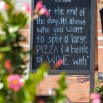 Witty, framed signs like “Feed Me Pizza and Tell Me I’m Pretty” and “Joey Doesn’t Share Food” (a nod to the TV sitcom “Friends”) hang on a long wall, further adding to the eatery’s unpretentious vibe.
