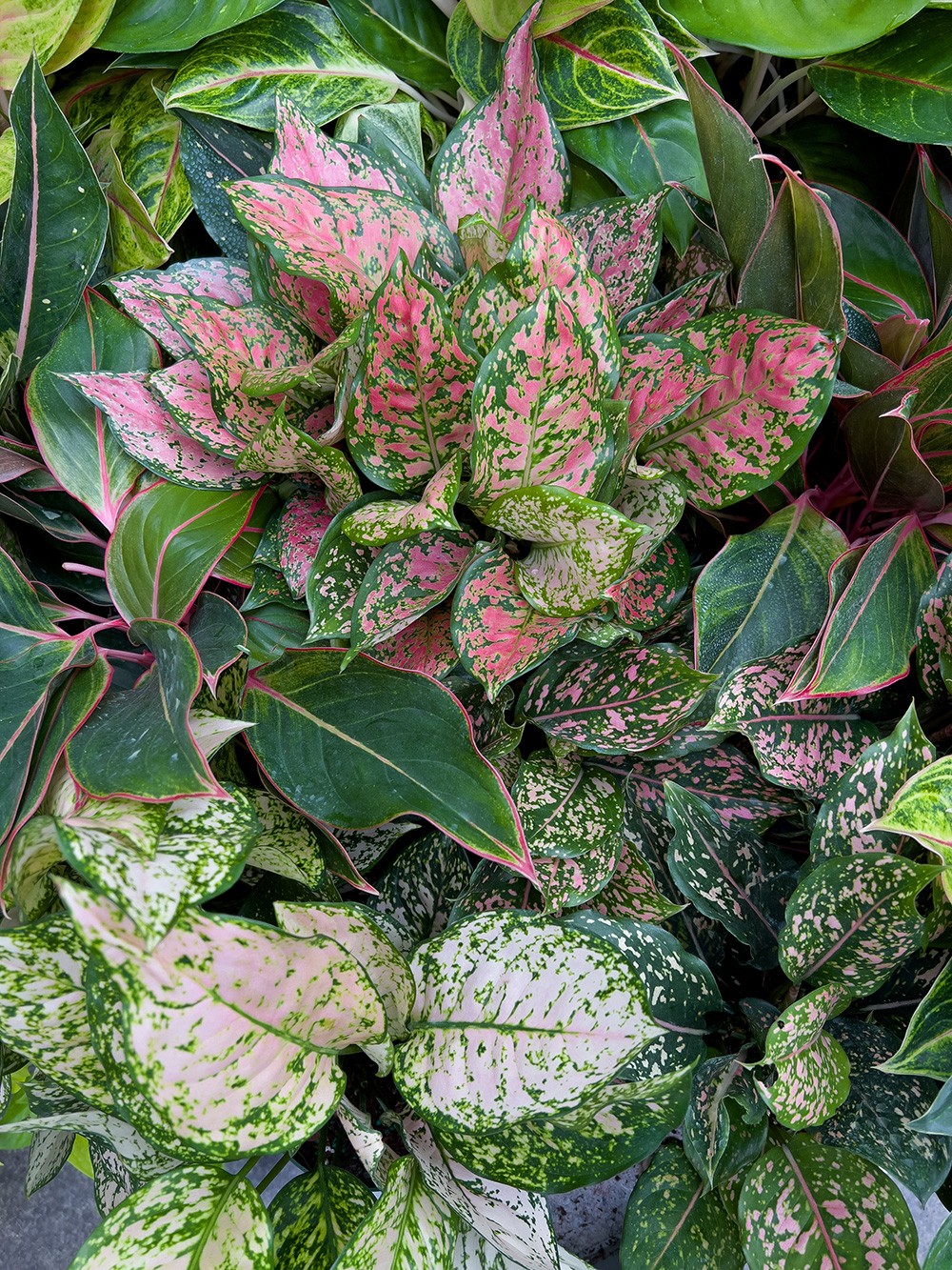 I prefer to use “agalonema” rather than “Chinese evergreen,” not because it sounds more snooty, but rather because green is just one of the many colors paraded by this snazzy plant with, depending on the cultivar, pinks, reds, or whites also being delightfully added in swipes, sweeps, swirls, splashes, or dashes on glossy, oblong leaves.