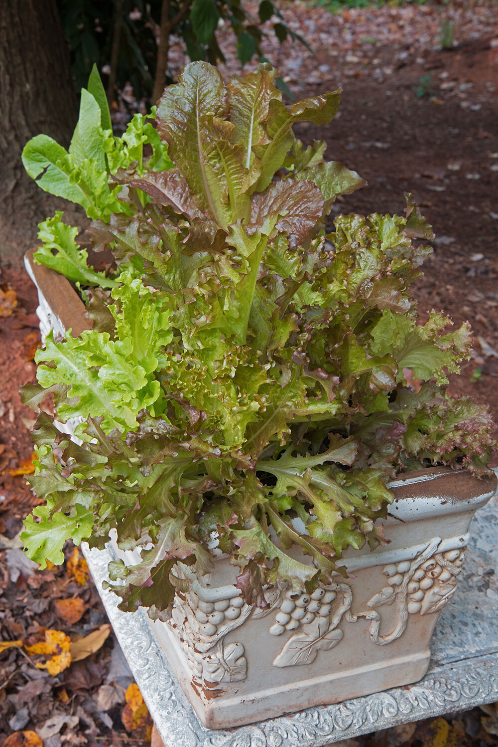 ‘Red Sails’ and ‘Green Oak’ lettuce mixing it up in an autumn planter