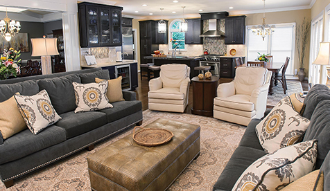 With the help of designers Desi McAlister of Kitchen & Bath Galleries and Donna Gates Davis of Design Works Studio, the Spivaks finally decided to knock down the walls separating their living room, kitchen and dining room and create the open-concept entertaining space they craved. The design team worked to combine Mary Ellen’s traditional style, Glen’s contemporary tastes, family antiques and an abundance of artwork into the perfect setting for spectacular soirees.