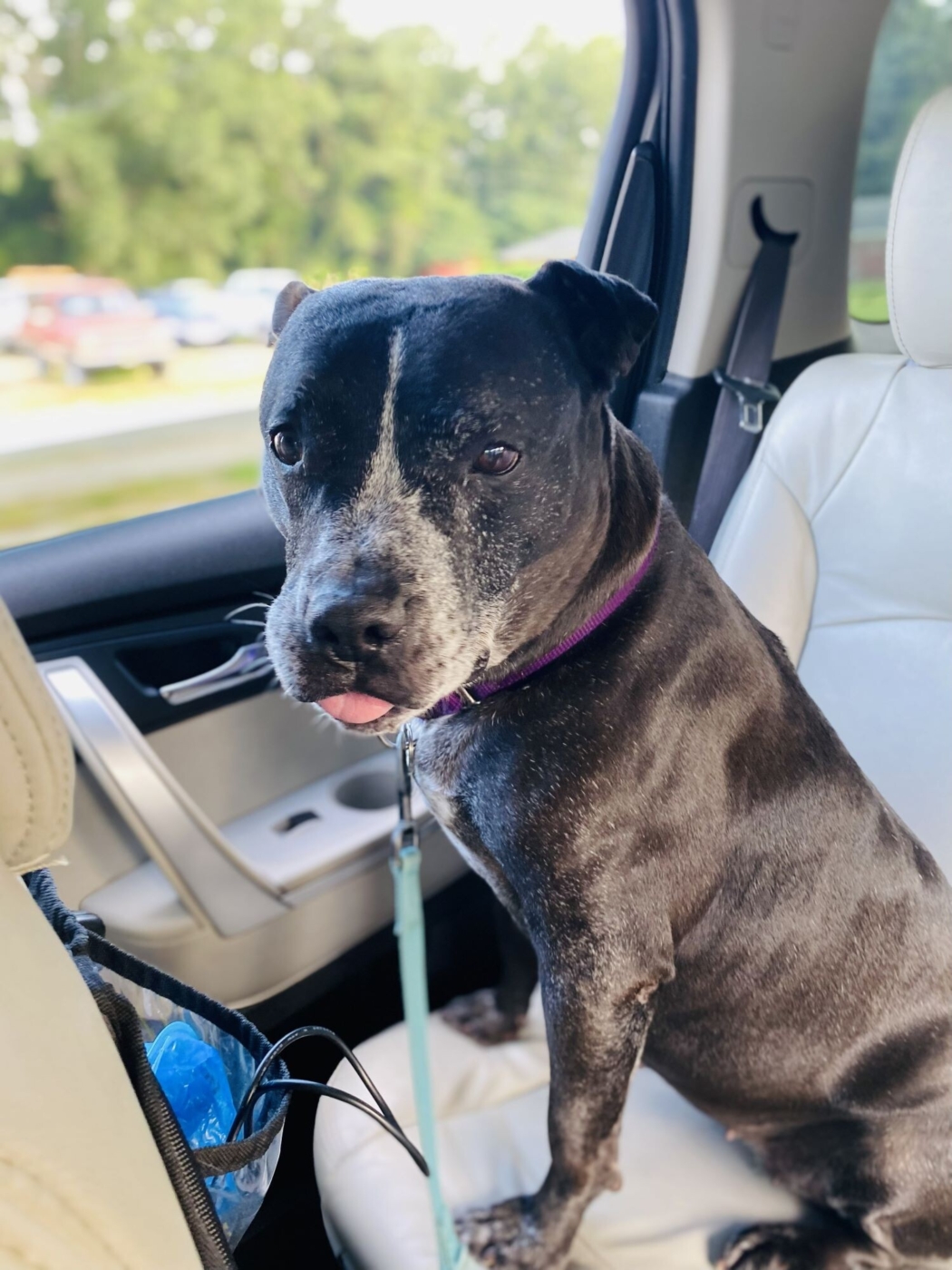 Hey there! I’m Riann, your new best friend. I’m a lovable senior pit bull/blue heeler mix with a heart as big as my smile. I might be a little older, but don’t let the gray muzzle fool you: I’ve still got some pep in my step (especially if you mention treats or car rides).