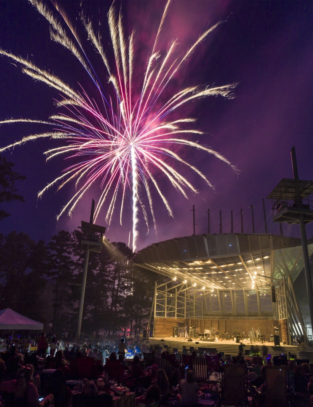 Patriotic favorites from the NC Symphony ending with a fireworks display over Symphony Lake.